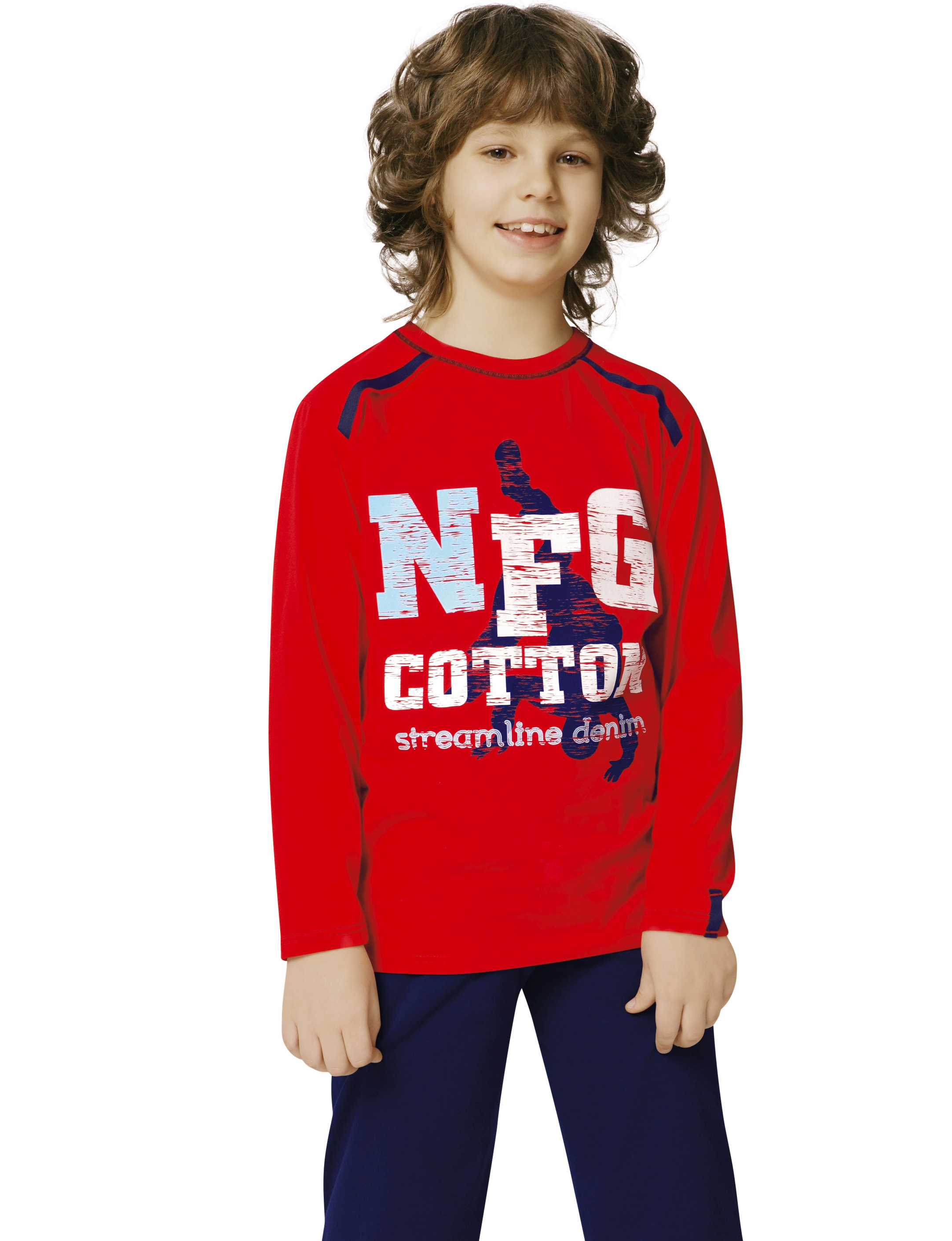 - chlapecké pyžamo s dlouhým rukávem, vrchní díl s obrázkem obrázkem a nápisem(10let). Kontrastní prošití okolo výstřihu. Kalhoty jednobarevné - tmavě modré. V pase do gumy. U velikosti 6let je obrázek letedla +nápis.