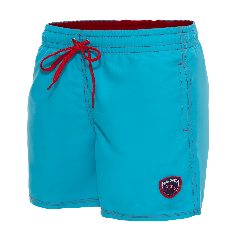 plavecké šortky pro chlapce, v pase guma. V pase je ozdobná šňůrka ke stažení, boční kapsy s kontrastním prošitím. Tyto kraťasy vyrobené z polyesteru jsou ideální na pláž, sport, plavání i každodenní nošení. Díky síťované podšívce se velmi pohodlně nosí. Mají také vyšívané logo štítu. Výrobce Zagano