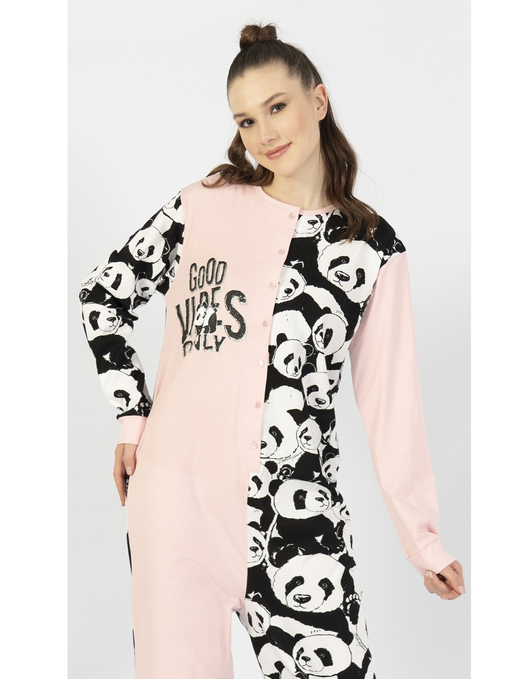 Dámský overal na spaní Pandy růžová - Vienetta Secret