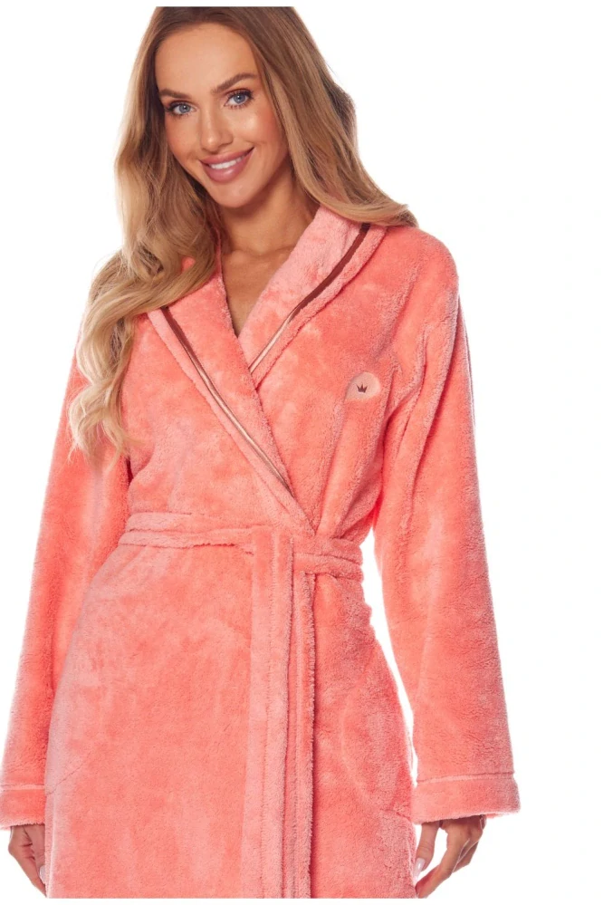 - dámský župan se šálovým límcem - dlouhý. Délka pod kolena. Nádherný luxusní župan, ozdobné saténové lemy na klopách. Boční kapsy + pásek na stáhnutí. Měkoučký a teplý materiál, který je příjemný na nošení. Nádherný dárek, který potěší každou ženu.
