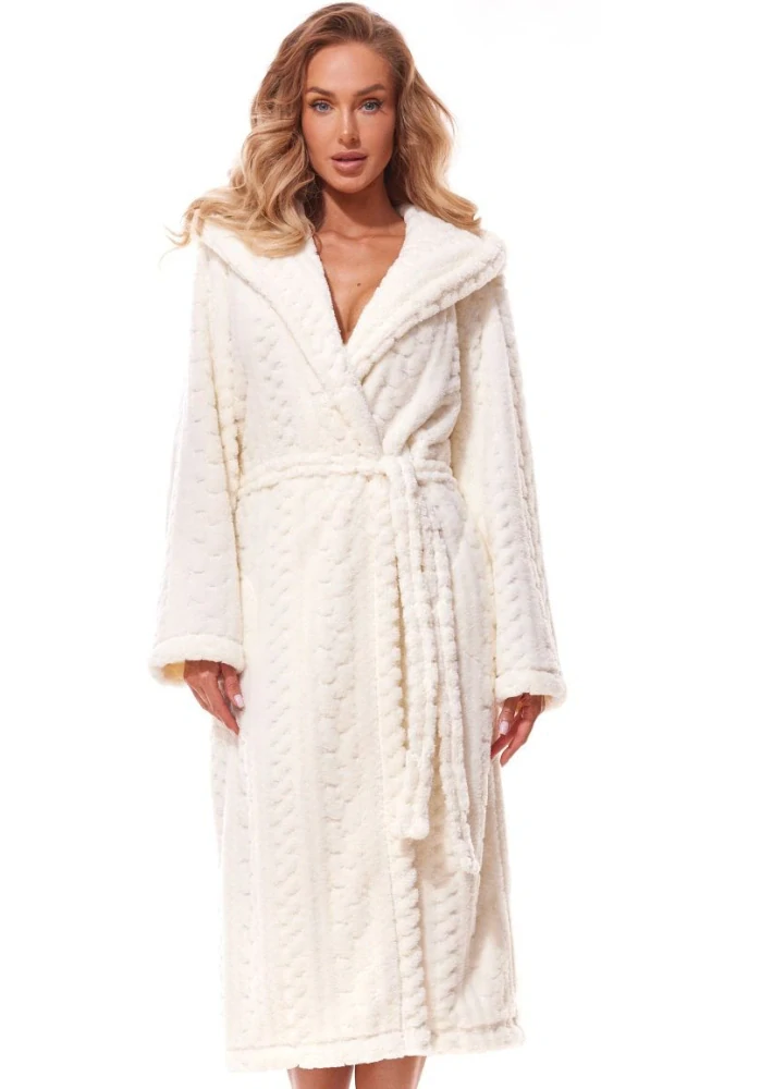 Tento útulný a stylový dámský župan je vyroben z výjimečně měkkého materiálu, který poskytuje maximální pohodlí a teplo. Jeho dlouhý střih dokonale obepíná tělo, takže je ideální jak po koupání, tak i na chladnější večery.