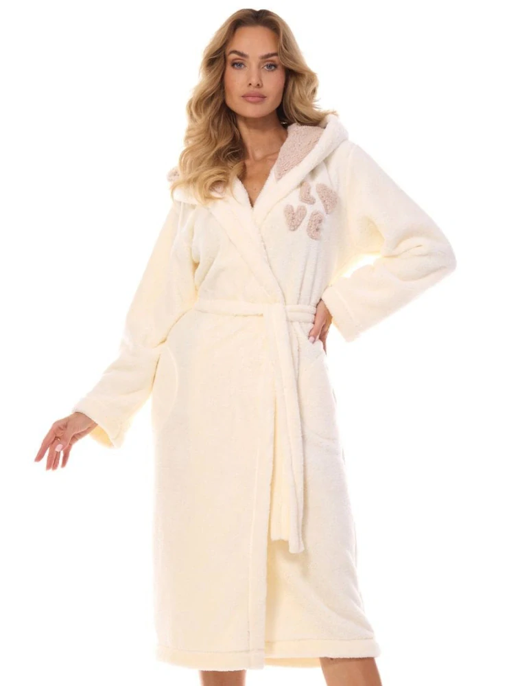 Výšivka "Love" umístěná v barvě a struktuře kapuce je jemným, ale efektním detailem, který odlišuje tento model od ostatních. Díky použití polyesteru je župan odolný, nenáročný na údržbu a zachovává si hebkost a tvar i po mnoha vyprání - prosím nepoužívejte aviváž!!!!