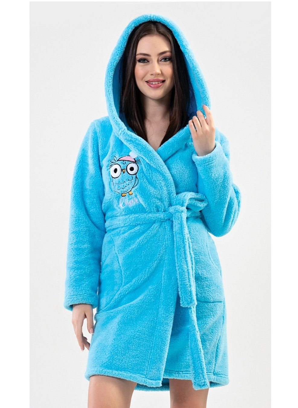 - dámský župan s kapucí, teplý, župan je příjemný na nošení, pásek na zavázání, dvě boční kapsy, délka nad kolena. Obrázek sovičky na přední straně. Měkoučký a teplý materiál, který je příjemný na nošení. Délka ke kolenům.