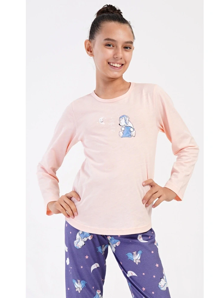 - dívčí pyžamo s dlouhým rukávem a dlouhými kalhotami. Na tričku s kulatým výstřihem je obrázek ledního medvídka s polštářem. Tento motiv se opakuje i na dlouhých kalhotách, které mají v pase gumu na stažení. Kalhoty nemají kapsy a jsou zakončeny lemy. Použitý bavlněný materiál je příjemný a poddajný na dotek. Pro maminky máme stejné pyžamko Good night. Výrobce: Vienetta Secret