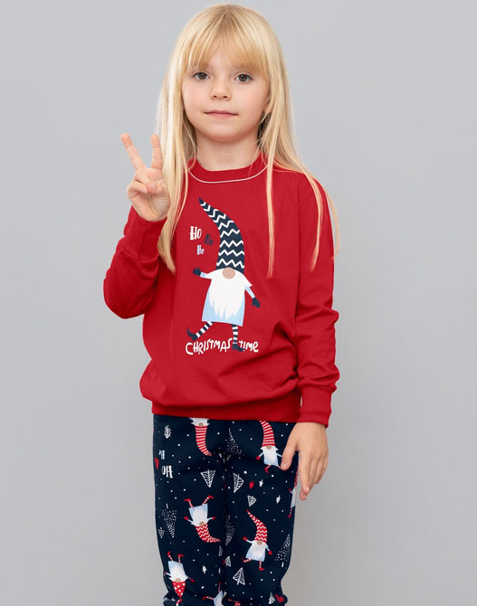 - dívčí pyžamo s dlouhým rukávem, výstřih do kulata s tenkým bílým lemem. Velký obrázek na přední straně s vánočním motivem. Kalhoty jsou potisklé obrázky skřítků, v pase do gumy, zakončené elastickým lemem. Krásný měkoučký materiál. Maminky i tatínci můžou mít stejné pyžamko Skřítek.
