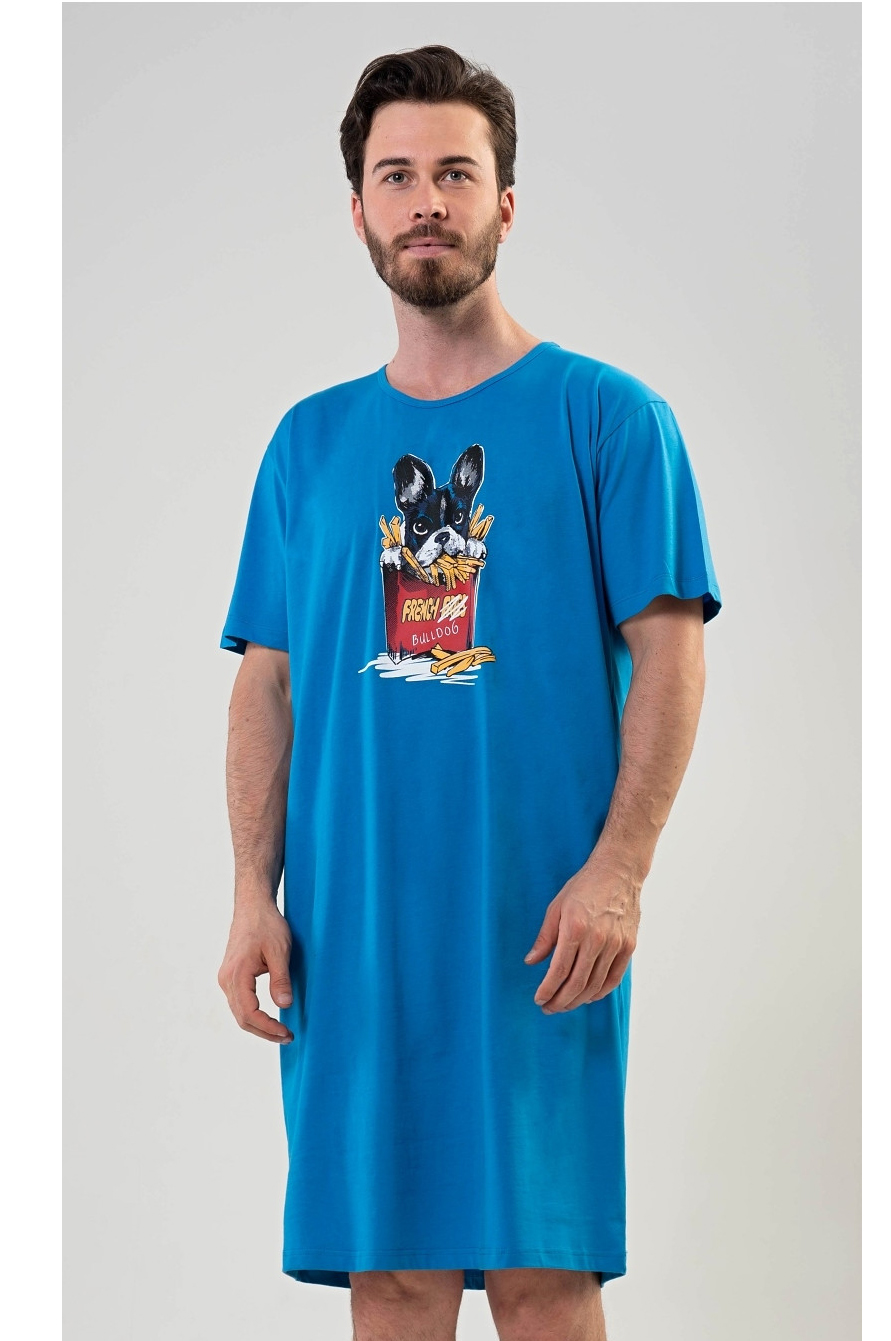 - pánská noční košile s krátkým rukávem, výstřih do kulata, v přední části obrázek Bulldoga v hranolkách. Délka ke kolenům. Výrobce: Vienetta Secret