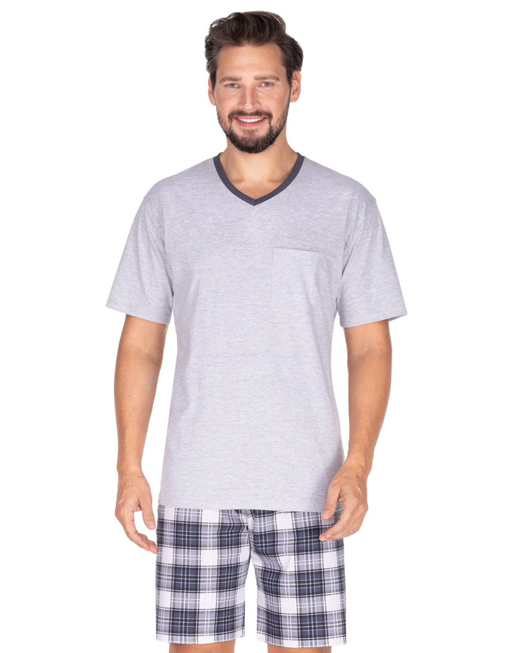 - pánské pyžamo s krátkým rukávem. Výstřih do V je olemován. Kapsička na oblasti prsou. Kraťasy do gumy - kárované. Měkká a příjemná bavlna. Kvalitní 100% bavlna. Výrobce Regina